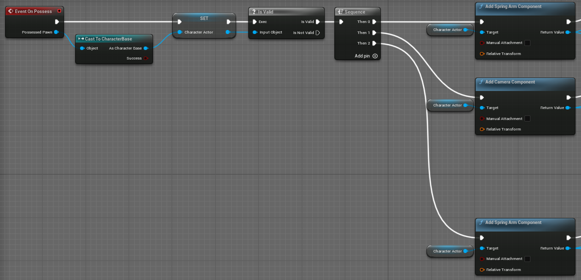반복작업을 최소화 하기 위해 캐릭터에 Possess 했을때 스프링암과 카메라를 만들어주는 노드를 작성하면 된다